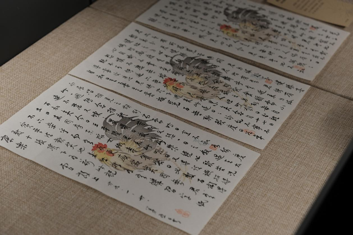 走进展厅,时间的气息扑面而来。柔和的灯光下,一封封泛黄的信札静置在玻璃展柜里。有的边角已显残缺,有的墨迹渗入纸纹晕开细密的痕迹,有的信纸上还勾勒着美丽的丹青图样。字迹或沉稳遒劲,或娟秀流转,或急促潦草——你几乎可以从笔画的轻重里,感受到执笔者彼时的心跳。