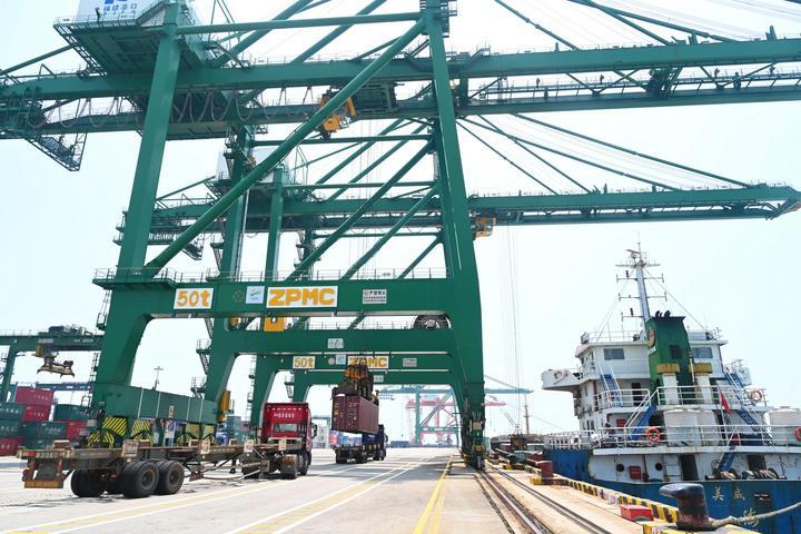 福州港江阴港区自动化装卸作业现场(2024年8月8日摄)。新华社记者 林善传 摄