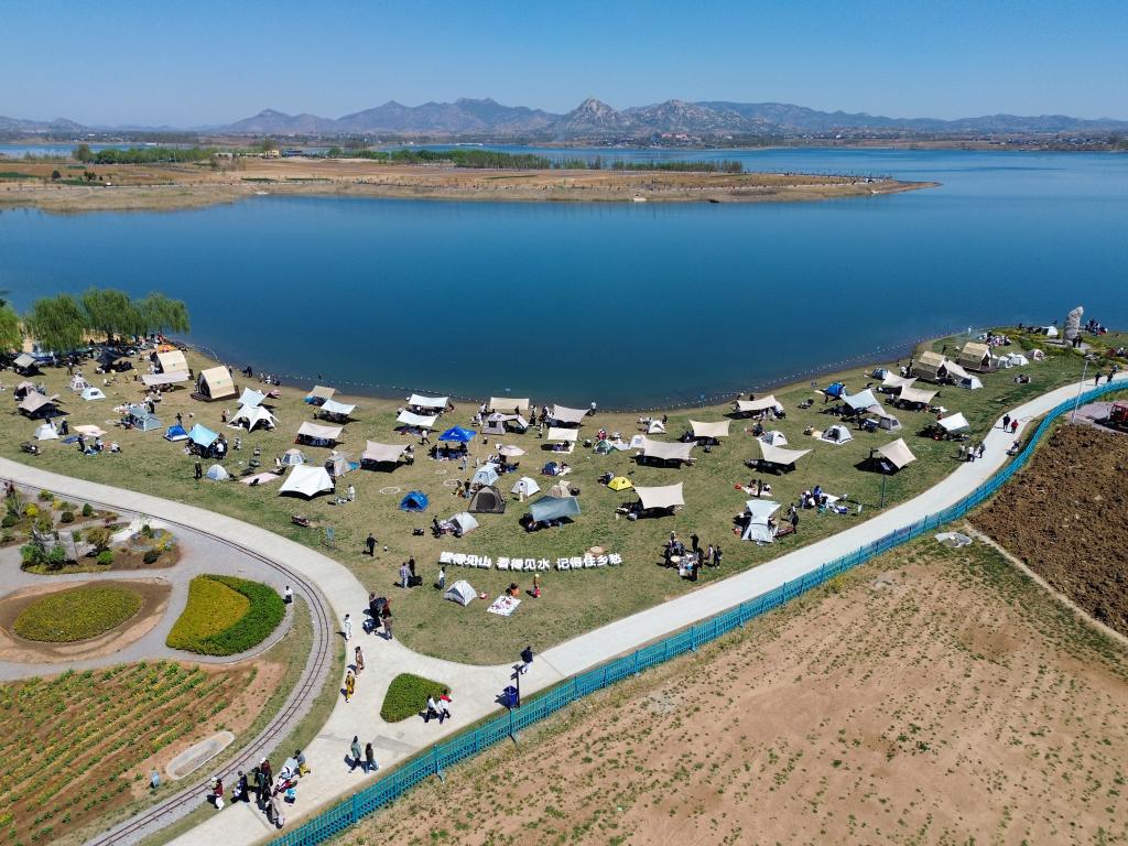 4月4日,游客在山东省滕州市龙阳镇“龙湖月色”省级乡村振兴齐鲁样板片区内露营休闲。新华社记者朱峥 摄