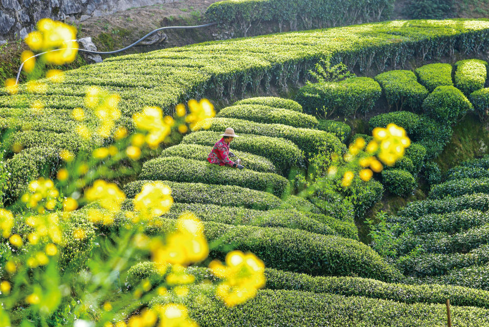 4月4日,茶农在三峡库区湖北省宜昌市秭归县茅坪镇长岭村一生态茶园采茶。新华社发(王辉富摄)