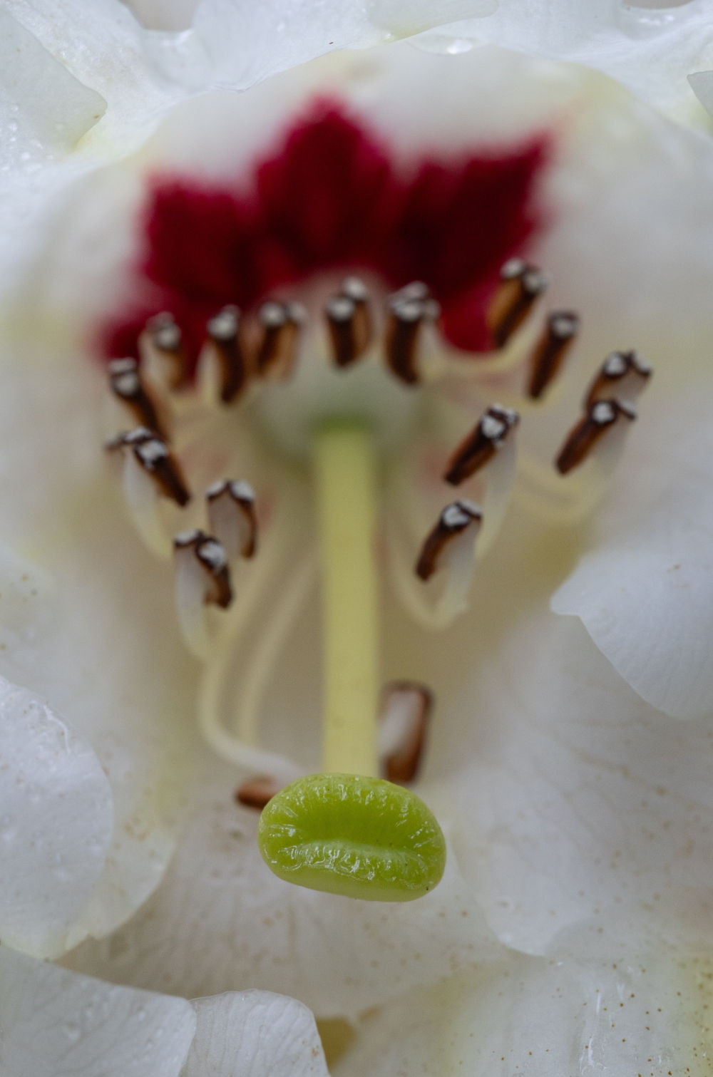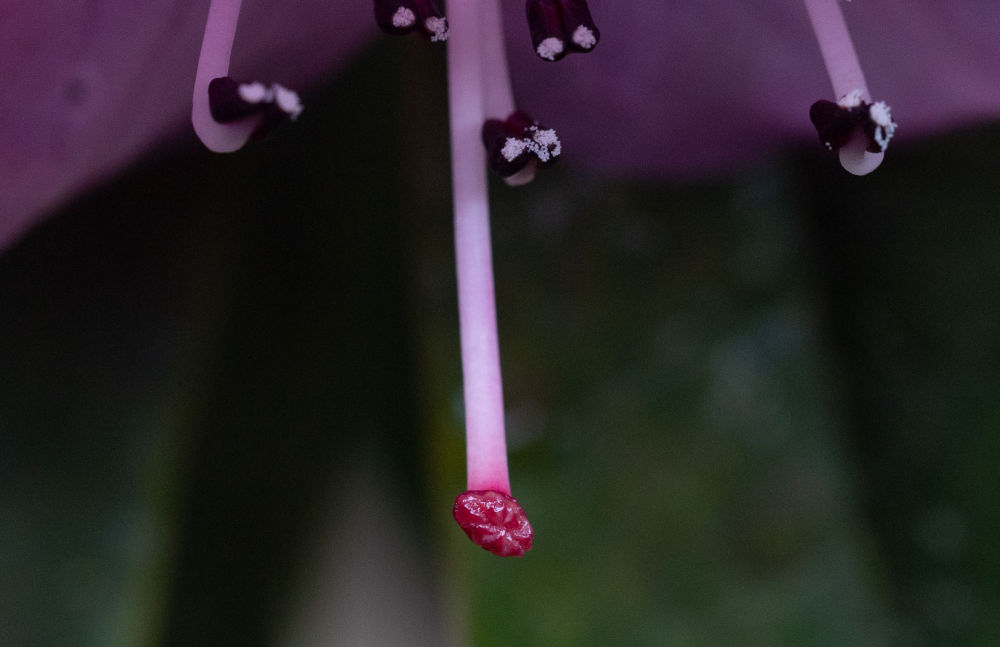 这是美容杜鹃雌蕊柱头(4月8日摄于成都市都江堰龙池国家森林公园里的华西亚高山植物园)。