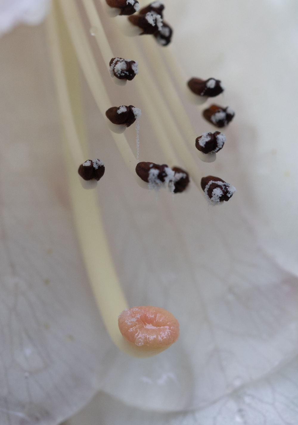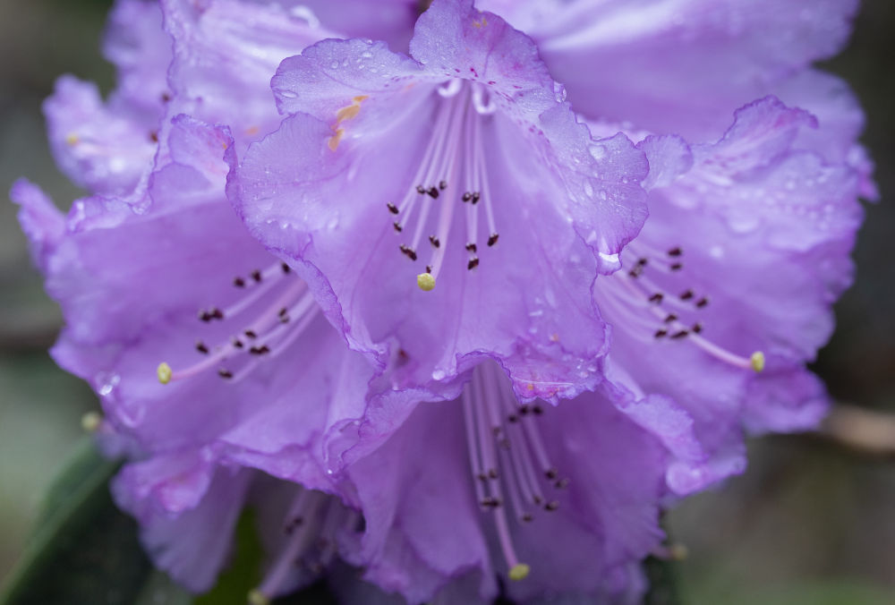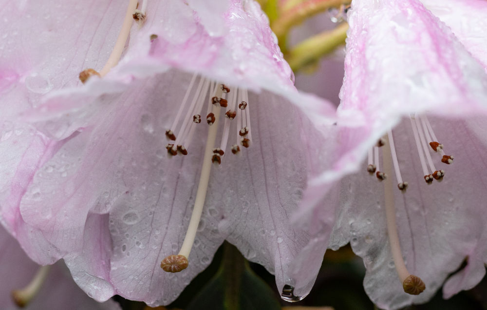 这是银灰杜鹃花蕊(3月29日摄于成都市都江堰龙池国家森林公园里的华西亚高山植物园)。