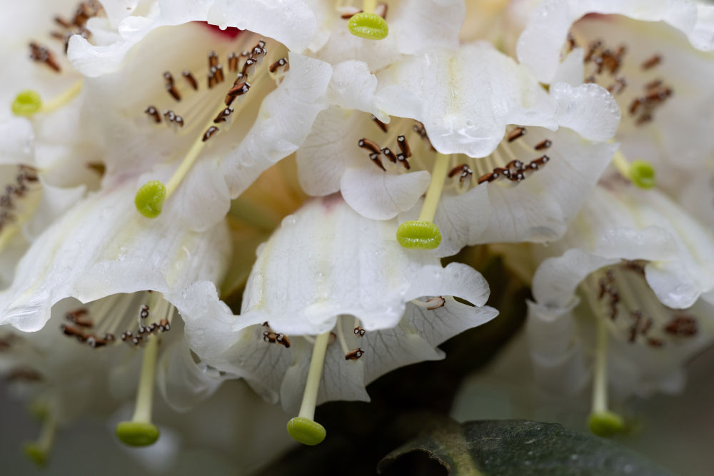 这是腺果杜鹃花蕊(3月29日摄于成都市都江堰龙池国家森林公园里的华西亚高山植物园)。