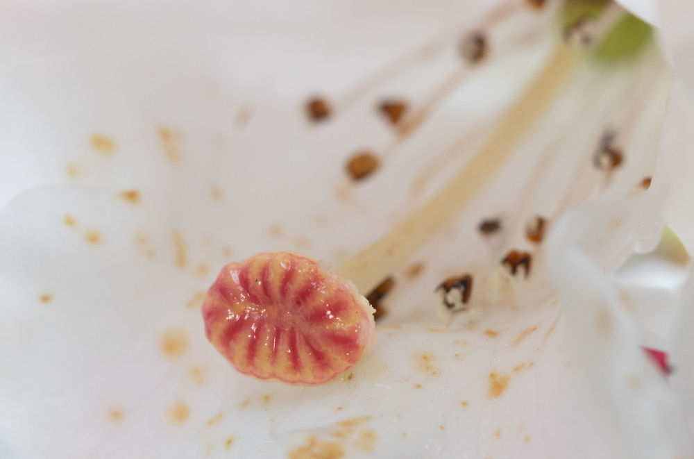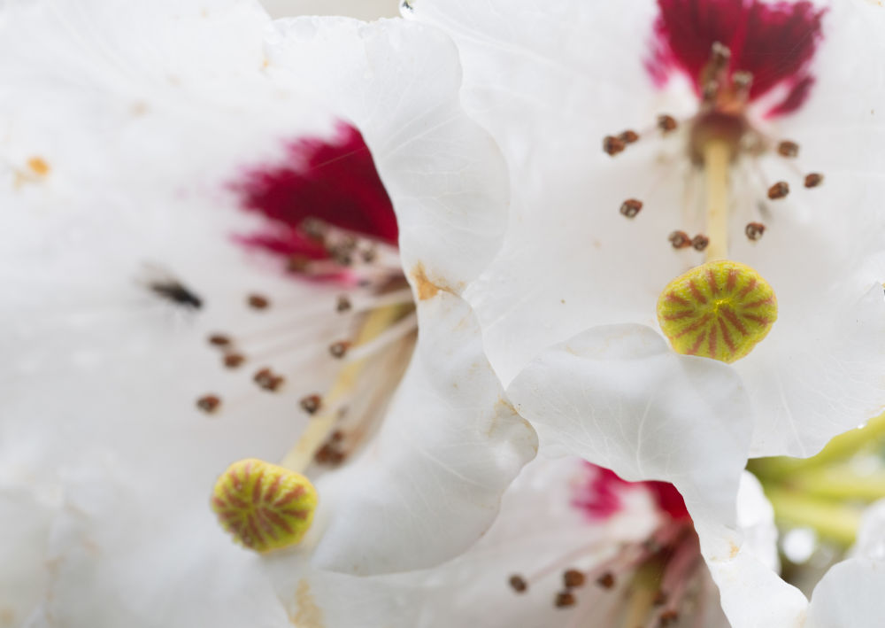 这是大钟杜鹃雌蕊柱头(3月29日摄于成都市都江堰龙池国家森林公园里的华西亚高山植物园)。