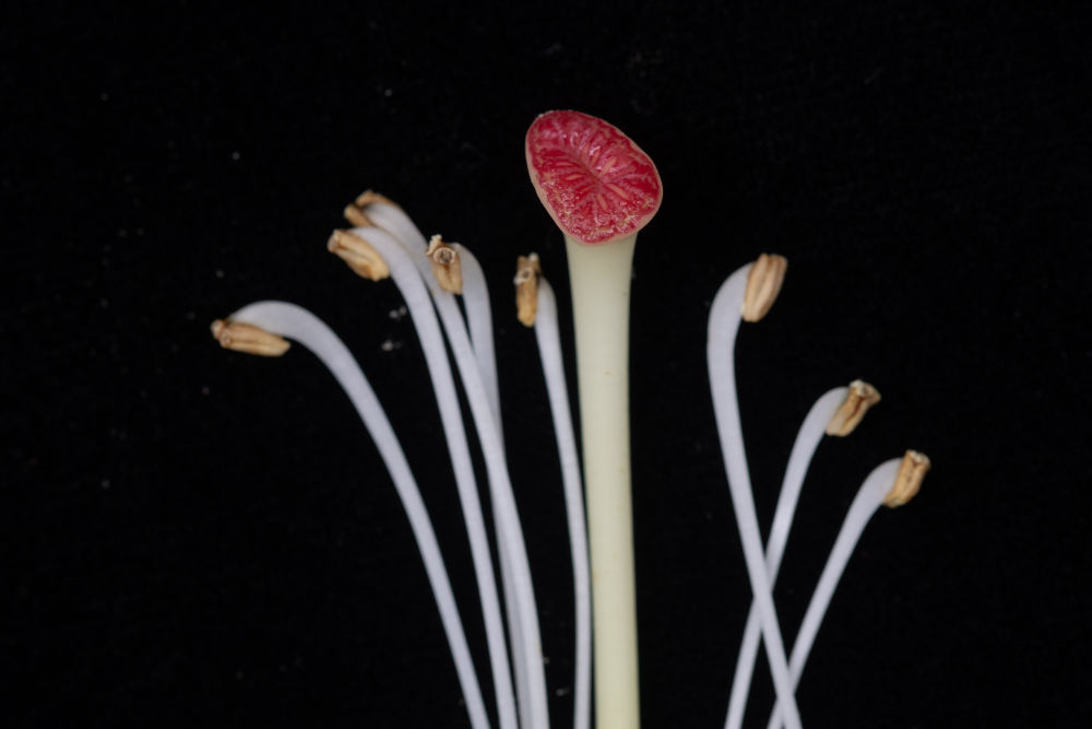 这是尖叶美容杜鹃花蕊柱头(3月22日摄于四川省峨眉山,科研人员李策宏采集的样本)。
