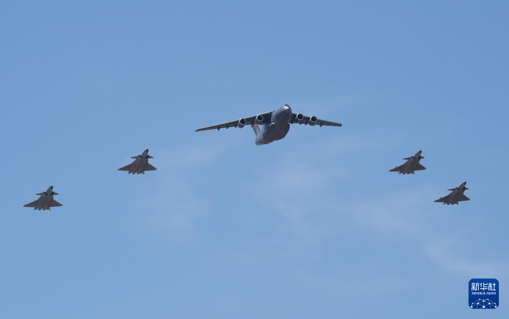 4月22日,第十三批在韩中国人民志愿军烈士遗骸由中国空军运-20B从韩国接回辽宁沈阳。“双20”五机编队列阵长空致以崇高敬意。4月22日上午,第十三批在韩中国人民志愿军烈士遗骸由中国空军运-20B从韩国接回辽宁沈阳。12位志愿军烈士英灵及146件遗物回到祖国怀抱。新华社发(余红春 摄)