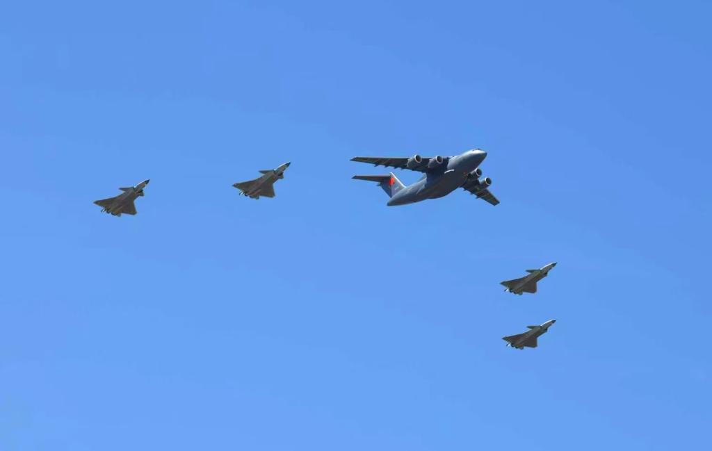呼号“荣归50”的运-20B一进入中国领空,呼号“红鹰”的4架歼-20便迎上来护航。“双20”列阵长空向你致敬,也请你见证:长空有盾,护卫中华。