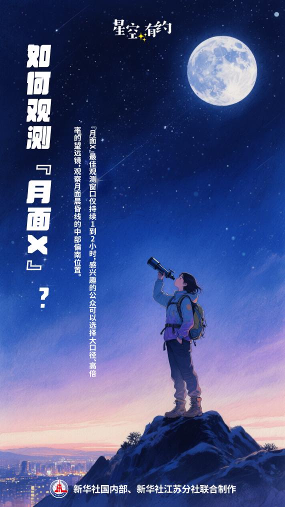 “月面X”虽非瞬间出现又瞬间消失的“快闪”天象,但也是名副其实的“限时特供”,最佳观测窗口仅持续1到2小时,感兴趣的公众需把握观测窗口期。可以选择大口径、高倍率的望远镜,观察月面晨昏线的中部偏南位置。