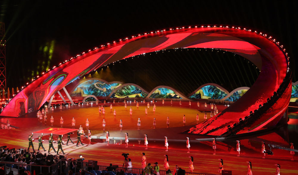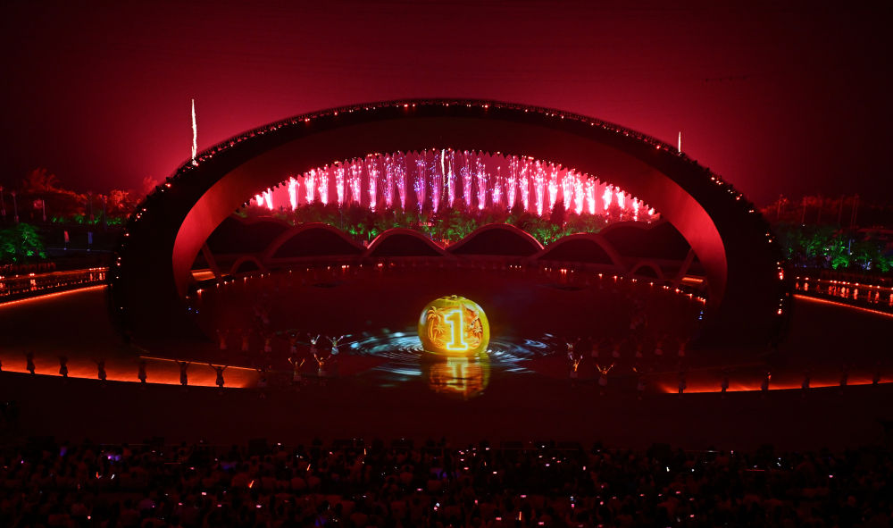 ↑演员在开幕式上表演。