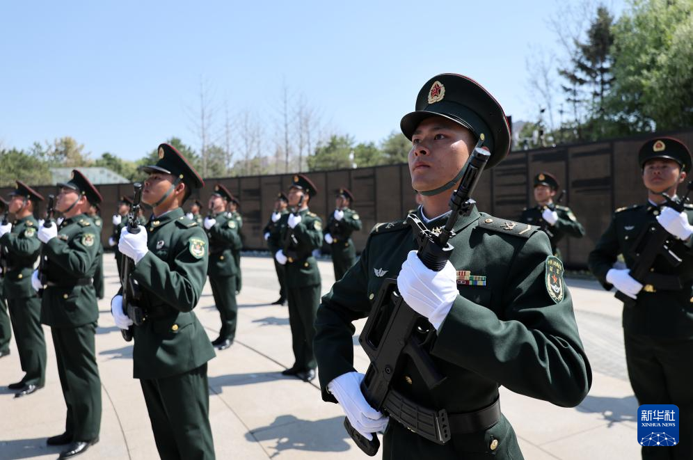 4月23日,在沈阳抗美援朝烈士陵园,礼兵整齐列队。新华社记者 李钢 摄