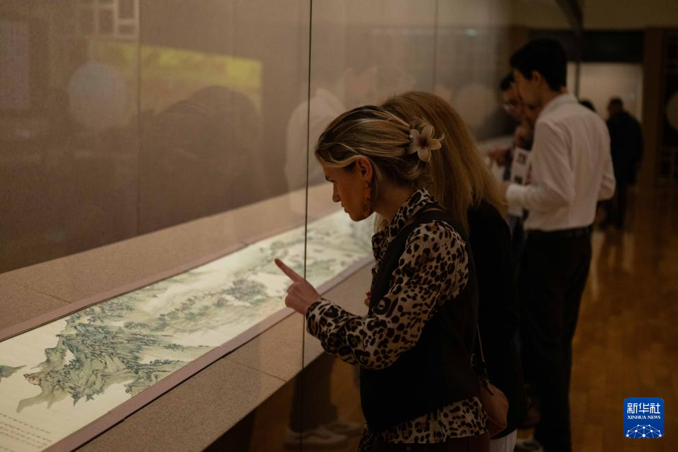 4月24日,人们在澳门艺术博物馆观看“山川响答——中国国家博物馆藏明清山水画展”。新华社发(张金加摄)