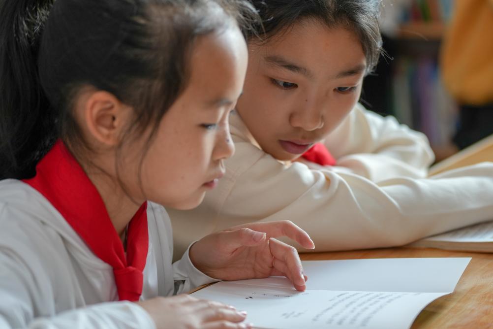 每天放学后,孩子们三三两两地涌进书屋来,有的坐在长椅上静静品读,有的凑在一起分享书中趣事。
