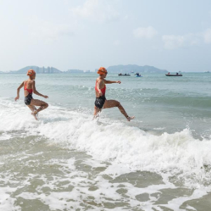 从运动模式看,游跑两项与大众熟知的铁人三项相近。奥运标准铁人三项要求运动员连续完成游泳1.5公里、骑行40公里、跑步10公里。相较之下,本届亚沙会游跑两项砍掉自行车环节,赛程更精简、完赛时长更短,更加轻量化、低门槛。