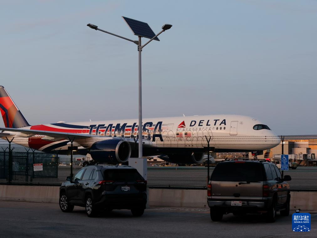 4月24日,在美国洛杉矶国际机场,一架客机在跑道滑行。新华社发(邱晨摄)