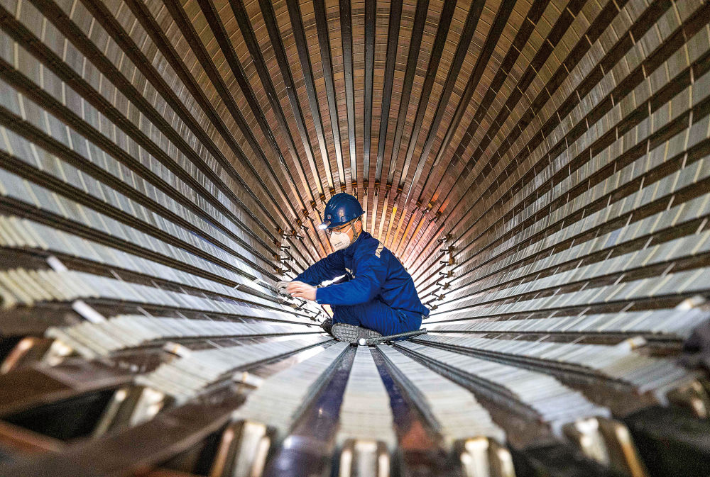 工人在哈电集团哈尔滨电机厂有限责任公司生产车间作业。新华社