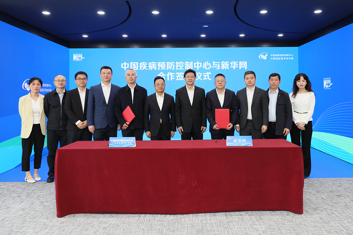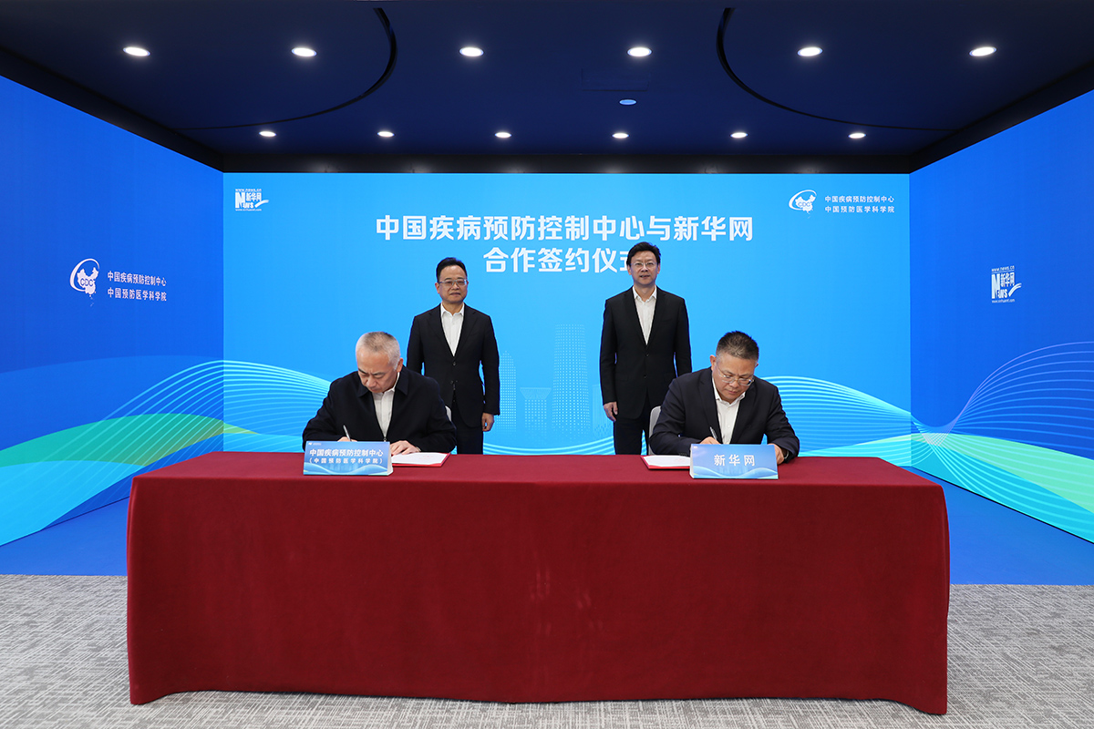 在中国疾控中心主任、党委副书记王健伟院士和新华网党委书记、董事长储学军共同见证下,中国疾控中心党委副书记周宇辉、新华网首席营销官徐明伟代表双方签字。