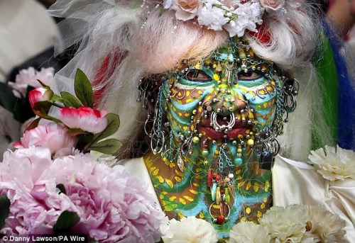 | 英最“艳”新嫁娘 全身穿7000个孔戴满首饰 |
