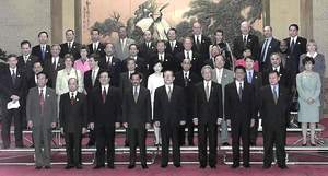5月15日,中国国家主席江泽民和文莱苏丹博尔基亚在人民大会堂共同会见出席亚太经合组织人力资源能力建设高峰会会议代表。 新华社记者 姚大伟摄