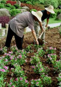 2001年APEC第二次高官会将于6月2日至3日在深圳举行。高官会筹备工作目前进展顺利。图为园林工人们在荔枝湖公园种花。 新华社记者 刘大伟摄