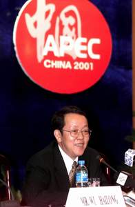 6月3日,亚太经合组织第13届部长级会议第二次高级官员会议在深圳结束,会后举行了新闻发布会。这是外交部副部长、高官会主席王光亚在新闻发布会上回答记者提问。 新华社记者姚大伟摄