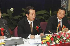 5月18日,由南开大学APEC研究中心主办的2001年APEC研究中心联席会议在天津经济技术开发区举行。这次会议的主题是“走进新世纪的APEC”,会议将就“APEC能力建设和经济技术合作的发展”、“APEC迎接全球化和新经济的挑战”、“次区域贸易安排与APEC”、“多边贸易体制与APEC”等问题展开讨论。图为外交部副部长王光亚在会议上发言。新华社记者刘海峰摄