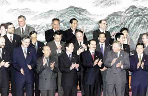 8月30日,第八届亚太经合组织中小企业部长会议在上海闭幕。图为部长与部分中小企业代表合影留念。 新华社记者 张明 摄