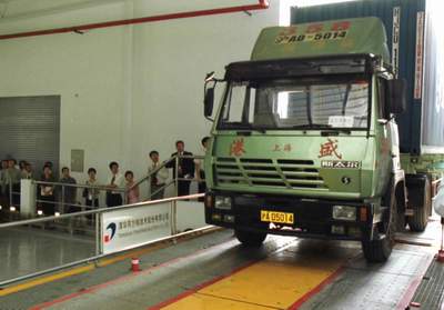 8月14日,在上海参加亚太经合组织海关与商界对话会的代表来到上海外高桥集装箱码头参观,并观看了上海海关在外高桥港区口岸率先使用的固定式大型集装箱检查系统。该系统自2000年底投入使用以来,查获涉嫌走私违规案件65起,案值约130万美元。上海外高桥港区今年预计集装箱吞吐量达300万标准箱(TEU)。新华社记者 任珑摄