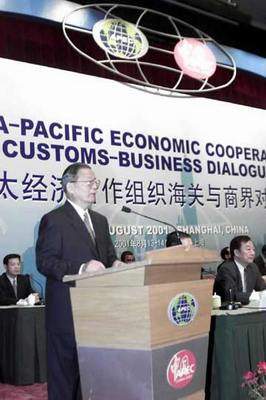 以“新经济:伙伴关系和贸易便利”为主题的亚太经合组织海关与商界对话会8月13日在上海国际会议中心开幕,APEC21个成员的500多名海关和商界代表参加了本次对话会。图为中国海关总署副署长赵光华主持会议。 新华社记者 张明摄