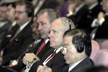 以“新经济:伙伴关系和贸易便利”为主题的亚太经合组织海关与商界对话会8月13日在上海国际会议中心开幕,APEC21个成员的500多名海关和商界代表参加了本次对话会。 图为与会代表。 新华社记者 张明摄