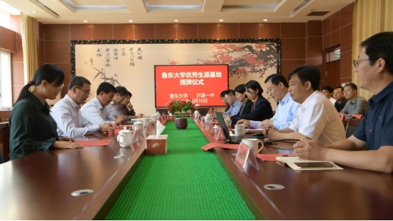 杨树锋介绍了沂源县第一中学基本情况及发展现状,就双方共建意见进行交流。鲁东大学招生就业处处长肖斌与杨树锋签署“鲁东大学优质生源基地”共建协议,并授予沂源一中“鲁东大学优质生源基地”牌匾。