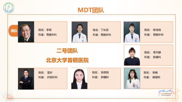 “循肠论道·晚期结直肠癌学苑”——结直肠癌MDT比赛是结直肠癌领域一年一度的学术盛宴,旨在规范结直肠癌诊疗流程,推广结直肠肿瘤MDT诊疗模式,促进结直肠癌诊治能力发展。赛事于今年3月份吹响号角以来,来自全国8大区域的共计64支高水平队伍展开激烈竞逐。北京大学首钢医院胃肠肿瘤MDT团队经历5月19日的区域赛、7月28日的半决赛,最终脱颖而出,与另外三支MDT团队晋级10月27日的总决赛,演绎巅峰对决。本次总决赛由浙江大学医学院附属第二医院张苏展教授和北京大学肿瘤医院李健教授共同担任主席,由来自中国医学科学院肿瘤医院、郑州大学第一附属医院、青岛大学附属医院、中山大学附属第六医院的专家共同组成评委团队。此次北京大学首钢医院胃肠肿瘤MDT参赛队伍由胃肠外科主任李明教授担任领队和总教练,胃肠外科丁长民担任队长,团队成员包括肿瘤内科张琪悦、医学影像科常天静、病理科张畅、肝胆胰外科蓝炘、胃肠外科陈佳佳五位青年医生。