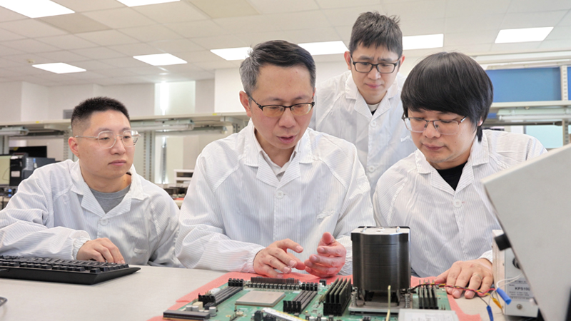 全国政协委员、飞腾信息技术有限公司副总经理郭御风(左二)和他的团队