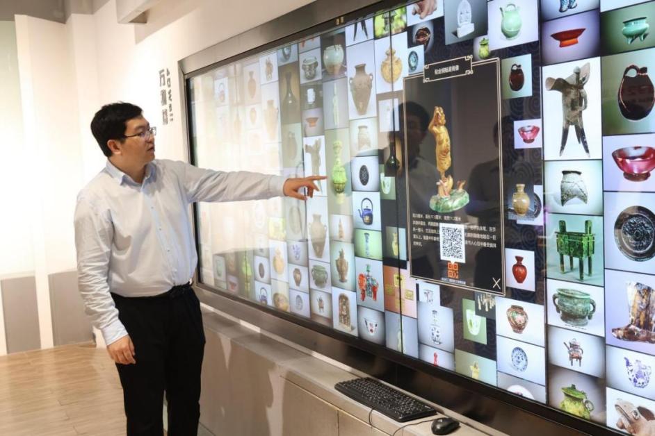 全国人大代表,五邑大学中德人工智能研究院院长、四维时代科技创始人崔岩介绍相关科技成果。