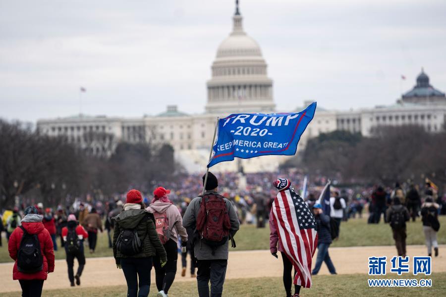 1月6日,在美国首都华盛顿,美国总统特朗普的支持者举行示威游行。新华社记者 刘杰 摄