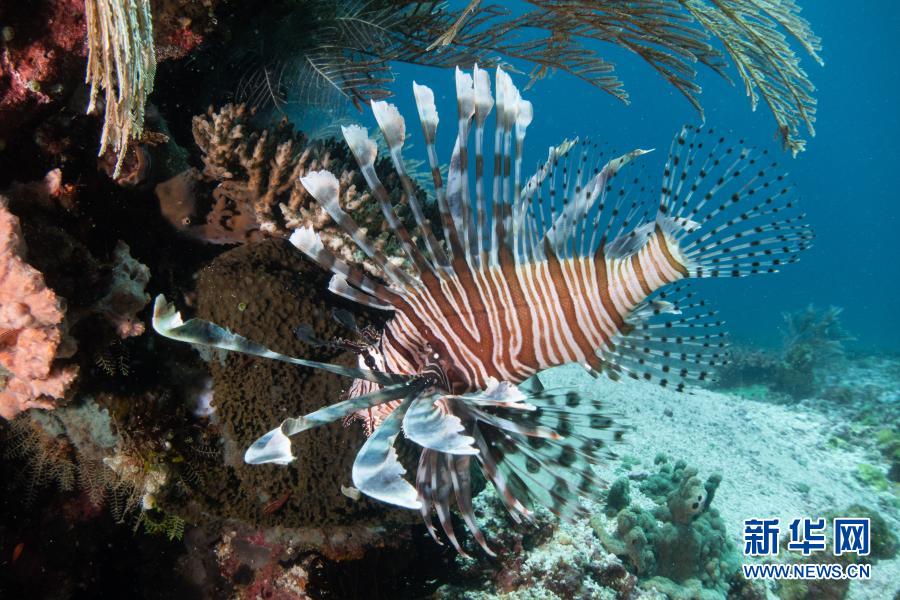 这是2018年10月28日在印度尼西亚科莫多国家公园海域拍摄的一条狮子鱼。科莫多国家公园位于印度尼西亚东努沙登加拉省,由3个大岛和26个小岛组成。