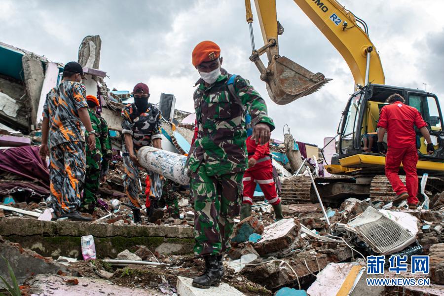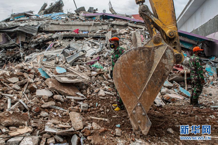 由印尼国家抗灾署、印尼国民军和警察、国家搜救局、当地卫生机构人员和志愿者组成的联合救援队正在紧张搜救被埋在废墟下的幸存者。