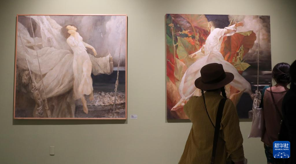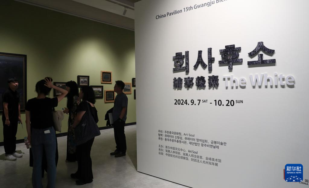 9月6日,第十五届光州双年展中国馆在韩国光州金峰美术馆举行开幕式。中国馆内展出了十位中国艺术家的多幅美术作品。