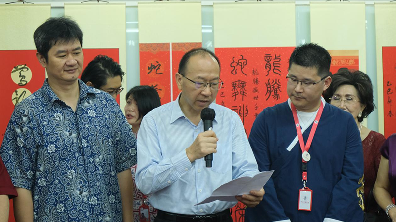 新华网雅加达1月20日电(记者陶方伟 叶平凡)1月19日,由印尼书法家协会和印尼书画学院联合主办的“蛇舞神州、盛世千年”乙巳蛇年春节书法挥春活动在雅加达举行,200余位来自印尼书法、艺术、教育、华人社团以及华人企业的各界人士齐聚一堂,共庆中国传统佳节。