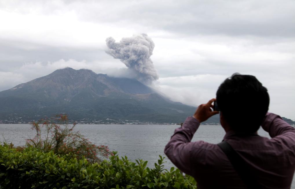 2011年11月2日,一名游客在日本鹿儿岛拍摄樱岛活火山。新华社记者冯武勇摄