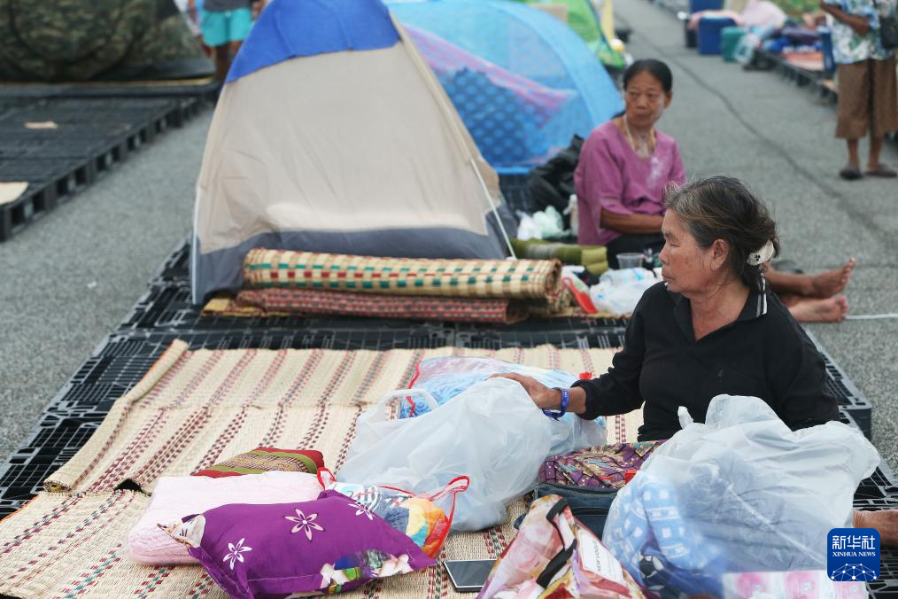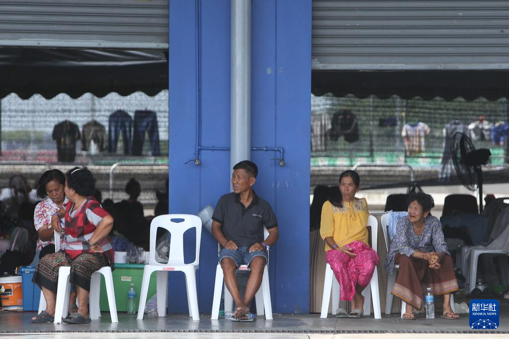7月28日,在泰国边境省份武里南府,当地民众在一处用作避难所的体育馆休息。