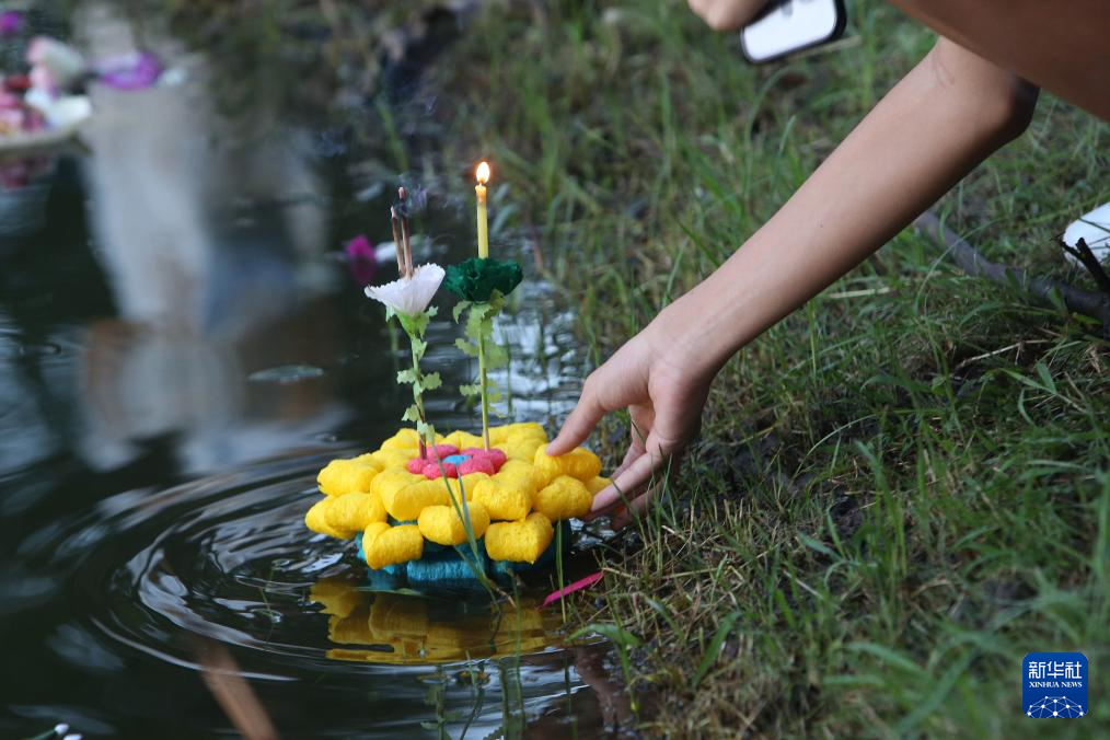 当日是泰国传统节日水灯节,泰国民众前往河流沿岸施放水灯,许愿祈福。