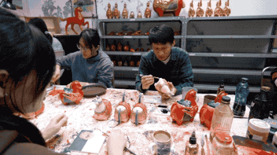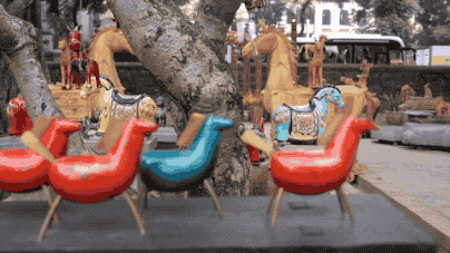 除了木雕马,展览中还有许多由越南艺术家黎辉与蓝风工作室共创的骏马形象,它们色彩斑斓、活灵活现。尤其是圆润可掬的“胖马”造型,将传统民间艺术与现代设计相融合。