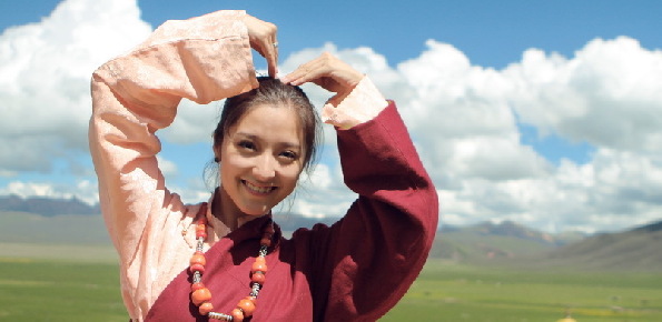 潘辰探访西藏照曝光 身着藏袍甜美露笑起舞