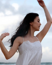 黄圣依赤脚漫步沙滩 飘逸白裙诠释清新之美