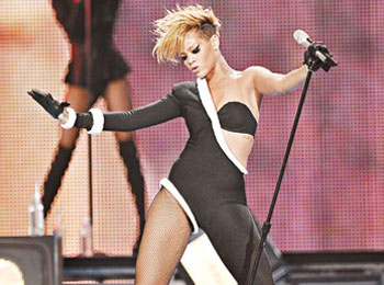 蕾哈娜酥胸半露 劲歌热舞为超级碗捧场(多图)