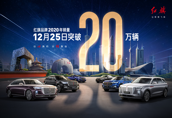 2018年突破3万辆,2019年突破10万辆,红旗不断创新突破,达到如今销量20万辆。“十三五”的圆满收官,让红旗深入人心。