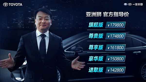 发布会上,一汽丰田汽车销售有限公司党委书记、总经理胡绍航,深入阐释了以用户为中心的TNGA强化战略,以数字化手段创建用户新生态的构想。同时,对亚洲狮的产品定位、产品优势、目标人群等进行解析,并正式发布了全系极具市场竞争力的价格,以及对用户重大利好的购车政策。亚洲狮新车共推出5个配置级别,价格区间为14.28-17.98万元。