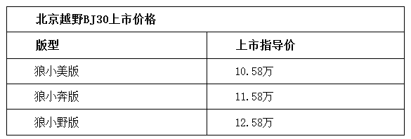 4月16日,北京越野全新承载式SUV——BJ30正式上市,售价10.58-12.58万。
