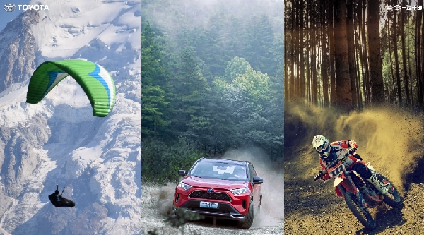 滑翔伞手借助超20米的滑翔伞伞翼及专业定位罗盘,从玉龙雪山上,成功降落到指定地点;而越野摩托车手,以丰富的骑行经验驾驶更轻量化的越野摩托车,在泥泞坑洼的山林间,几经闪、转、腾、挪,赶到集合地;另外一位专业赛车手,则驾驶着性能强悍、具备Sports Pro属性的RAV4荣放双擎E+,以最快的速度到达终点。