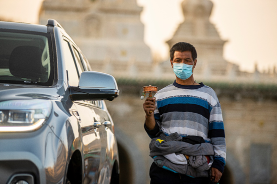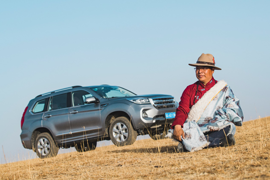 返程的路上,途径一片牧场,看见车队到来,牧场主人——一位藏族牧羊大叔特地换上了民族服饰,说什么也要和哈弗H9留下几张合影。大叔说自己有一台哈弗H6,也是中国哈弗的粉丝。牧羊人的豪壮和哈弗H9的硬派成了绝佳拍档。